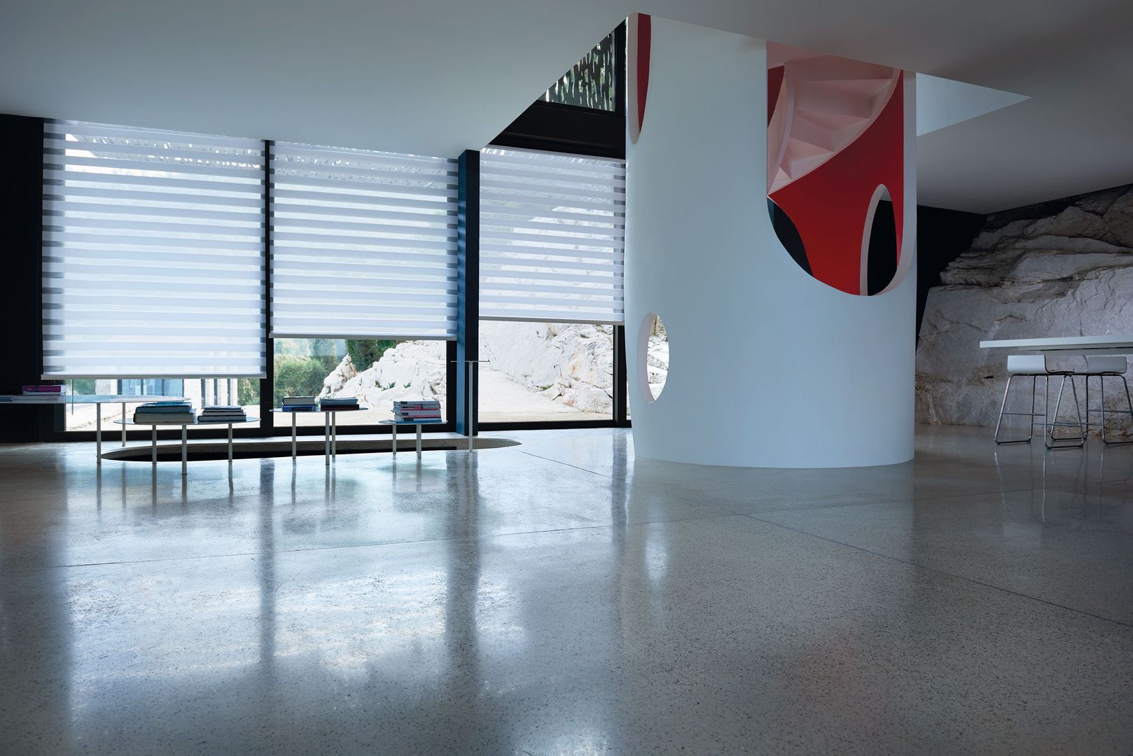 Das Raffrollo ist die perfekte Symbiose aus Technologie, Handarbeit und Kreativität. Individuell ausgewählte Stoffe werden manuell nach Maß zum Faltrollo konfektioniert und erlauben so eine flexible Raumgestaltung. Die Anwendung reicht von konventionellen Fenstern und Terrassentüren über Giebelfenster und gebogene Anlagen bis zu Dachfenstern. Besonders interessant ist, dass beim Raffstore im Gegenzug zum klassischen Vorhang links und rechts des Fensters kaum bzw. kein Platz benötigt wird, um den Stoff zu parken, da die Bahnen nur vertikal und nicht konventionell horizontal bewegt werden.